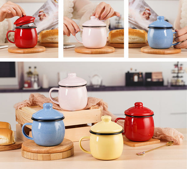 Big5 Premier Quality Color Enamel Belly Mug 8cm with Lid