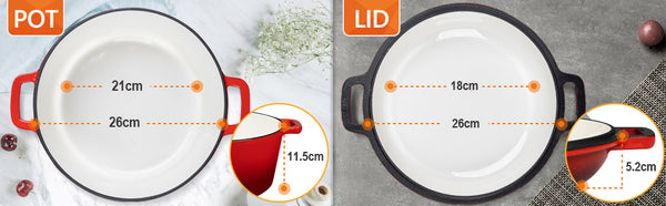 - Cast iron casserole, shallow casserole, frypan, mini casserole, 2in 1 casserole; oven safe to 260℃