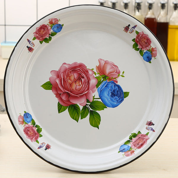 Agate Enamel Food Plate Fruit Plate Serving Tray Decorated 30cm/40cm