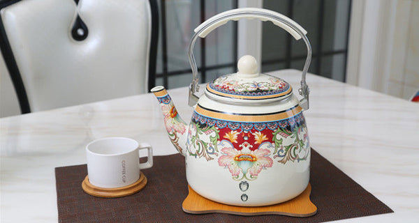 - Add some functional vintage-style decor to your kitchen with this enamel indoor/outdoor coffee pot, tea pot