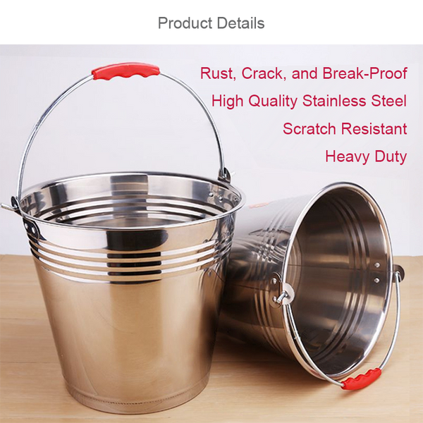 - Made of high quality stainless steel, stainless Steel buckets are scratch resistant, and rust, crack, and break-proof.